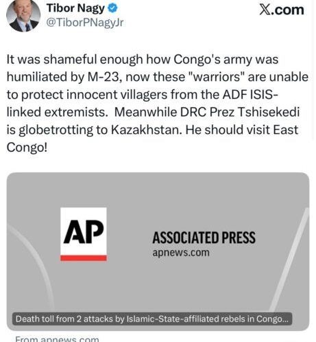 Selon un message publié sur Twitter par @TiborPNagyJrb, ces « guerriers » de l’armée congolaise ne réussissent pas à assurer la sécurité des villageois innocents dans l’est de la République démocratique du Congo, région particulièrement touchée par ces violences. L’ADF, groupe armé islamiste, continue de semer la terreur, provoquant morts, déplacements et désarroi.